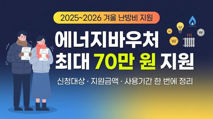 에너지바우처는 에너지 취약계층 가구에 전기·가스·난방비를 바우처(이용권) 형태로 지원하는 제도입니다.