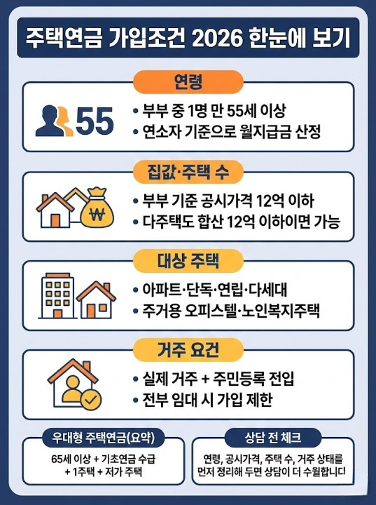 2. 2026년 기준 주택연금 핵심 가입조건 한 눈에